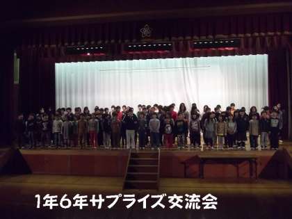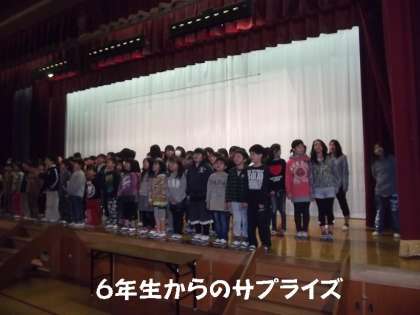 今日は,そのお返しで6年生が1年生をサプライズで体育館に呼びだし,卒業式に歌う歌を1年生に聞かせました。そして,1年生もまたまたお返しに,入学式で歌う歌を6年生に聞いてもらいました。