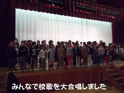 最後はみんなで舞台に上がり,「校歌」を全員で大合唱しました。