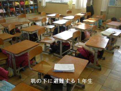 事前に,子どもたちには,地震の恐ろしさ,避難訓練の意義・目的を各担任から話をしてのぞみました。