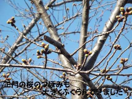 正門前の桜のつぼみが大きくふくらんできました。入学式の頃は,満開になってくれるでしょうね。ポカポカ暖かい春がもうそこまでやってきています。