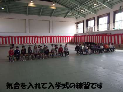 紅白幕が張ってあり,フロアシートがしかれた入学式モードの中の練習だったので,少し緊張感がありました。