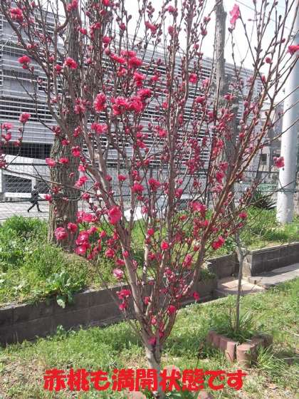 本校ビオトープでは,桃の花が満開になっています。白桃と赤桃の木があり,まだ小さめですが,見事な花を咲かせています。