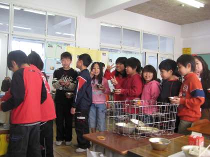 みんな笑顔でおかわりの列を作っていたので、思わずパチリ。
