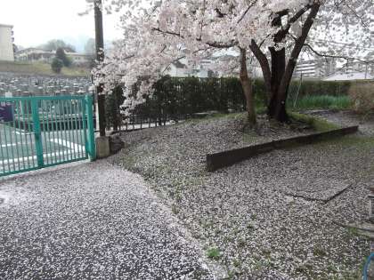 昨夜の雨で,学校の東門の桜(ソメイヨシノ)が!!!