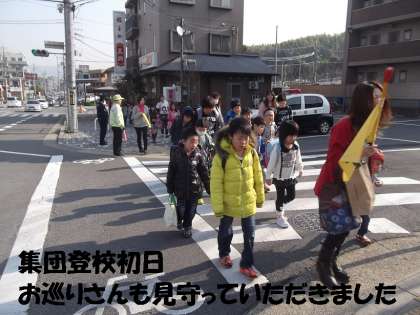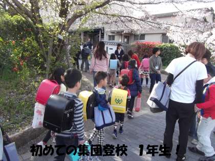 今日から1年生も集団登校で登校しました。校門前で元気に「おはようございます!」の声が聞こえました。
