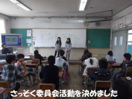 教室では,さっそく教科書に名前を書いたり,委員会活動の分担を決めていました。