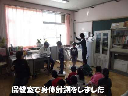 入学して初めて保健室に入りました。そして,身体計測をしました。身長,体重を保健室の先生に測ってもらいました。