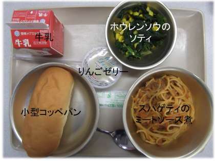 「ホウレンソウのソティ」「牛乳」「りんごゼリー」