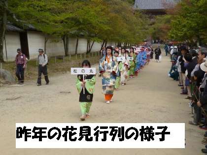 本日13時から,醍醐寺の年中行事「豊太閤観桜行列(醍醐寺花見行列)」が行われます。