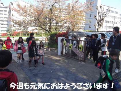 26年度が始まって2週目!子どもたちは元気に登校してきました。今朝も早く登校した6年生が正門前で立ってくれて,「おはようございます」を連発していました。
