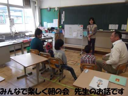 朝会のあと,4人そろって朝の会をしました。毎日交代で日直さんが司会し,その日の予定や給食の献立をお話ししてくれます。その後,先生から今日からはじまる委員会活動のお話がありました。
