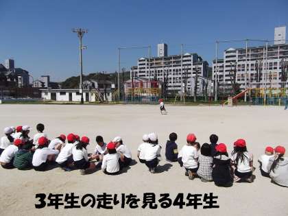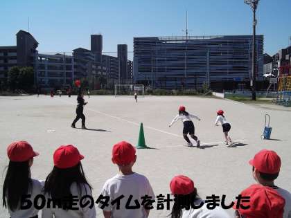 今年になって,どの学年よりも早く「50m走」のタイムをはかりました。4年生と合同でしたが,4年生が見ている場で3年生が走りました。