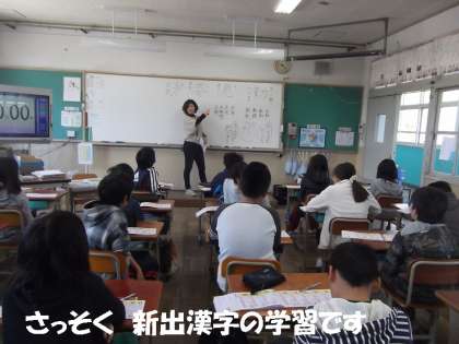 2組は,早速勉強です。新出漢字の熟語を先生と一緒に考えていました。