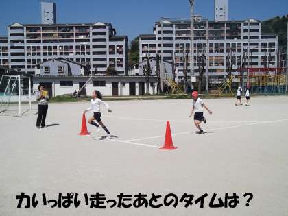 2校時の体育で春の体力テストの「50m走」のタイムをはかりました。