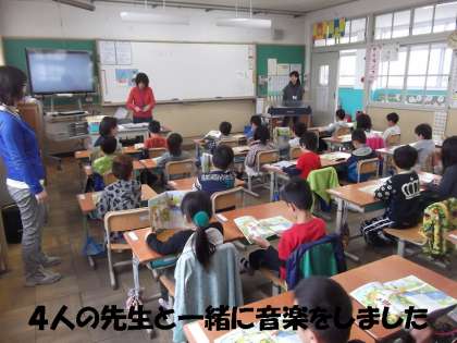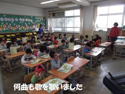 2時間目は音楽でした。担任の先生以外にも3名の先生に入ってもらい,一緒にがんばりました。保育園時代にもよく歌った「さんぽ」など何曲も大きな声で歌い楽しい時間になりました。