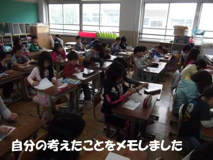 「うーん??」と考えながら,自分の考えを紙に書いていました。きっと学年目標を決めるのでしょうね?どんな学年目標になるか楽しみです。