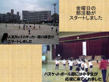 放課後,金曜日の部活動(サッカー部・バレーボール部・バスケットボール部・音楽部)がスタートしました。