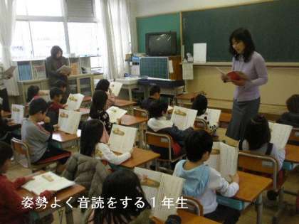 今日は午後から校内研究会があり,1年の子どもたちの授業を全教職員が参観しました。