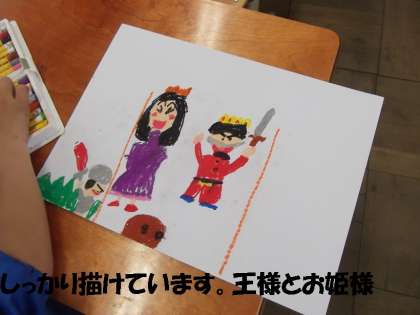 「ロボット」「かいじゅう」「お花」「ものがたり」「海」「・・・」など,思い思いのものを描いていました。