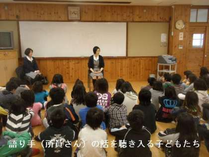 2時間目に恒例のストーリーテリングがありました。いつものように醍醐中央図書館の方にきていただき,ストーリーテリング(本なしの読み聞かせ)をしてもらいましたが,語り方のうまさに,子どもたちはどんどん物語にのめりこんでいって,語り手(所員さん)をじっと見つめて聞いていました。