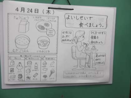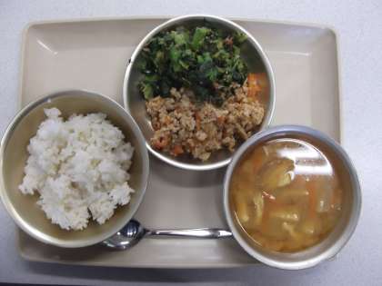 子ども達には,特にとりそぼろどんぶりのぐが大人気でした。具をご飯にのせて,みんなパクパクと美味しそうに食べていました(写真下)。ごちそうさまでした。