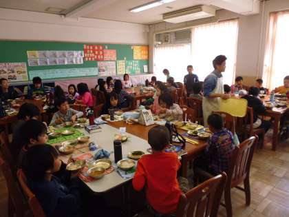 3くみでは,各学年とともに学ぶ場として,給食交流を設けています。今年度は年間通してすべてのクラスと交流を進めていきたいと思っています。