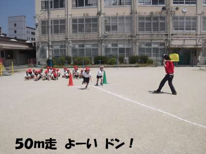 そんな中で,1年生は体力テストで「50m走」のタイムを計りました。