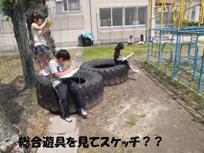 図工「たのしいこと見つけた」で,中庭や運動場に出て,日々の生活の中から楽しいことをスケッチしました。