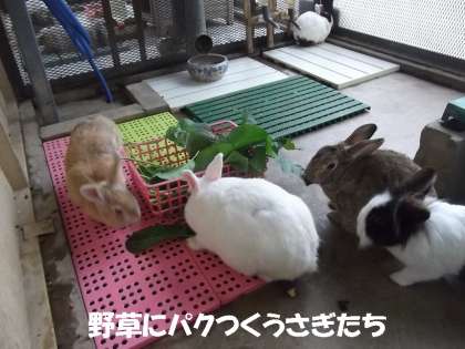 昼前から雨がぽつぽつ降ってきました。うさぎたちも小屋に入ってのんびりしています。運動場の暗渠(あんきょ)排水工事も雨が降り出す前に終わりました。