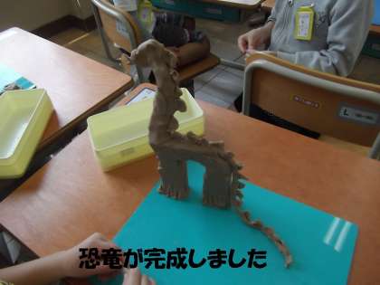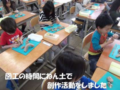 図工の時間にねん土を使って創作活動をしました。今日は自分の好きなもの,思いついたものを自由に作りました。