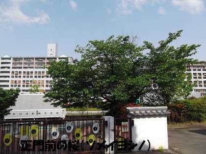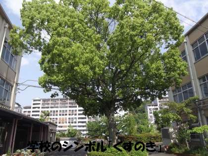 学校の正門前に桜(ソメイヨシノ)と楠木(くすのき)があります。どちらも学校を代表するシンボルの木です。