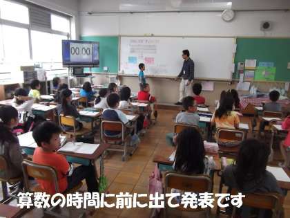 3年の算数は,専科の先生に教えてもらっています。毎時間,いろいろな工夫,しかけを使って子どもたちが意欲的に学習できるようにすすめられています。もちろん担任の先生も個別に関わっています。