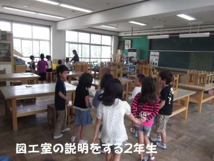 図工室や放送室,校長室・・・すべての特別教室を案内し,2年生が1年生に説明をしていました。