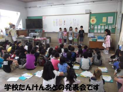 学校たんけんが終わってから,2年生の教室で合同発表会をしました。