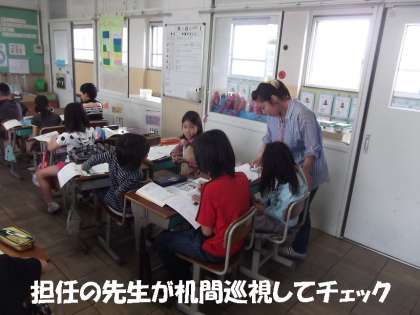 算数の時間は,いつも2人の先生と学習しています。子どもたちの学力定着のために,専科の先生と担任の先生がそれぞれ個別に関わっています。