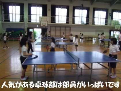 水曜日は体育館で卓球部が活動しています。人数の多い卓球部は6台の卓球台を使って活動しています。