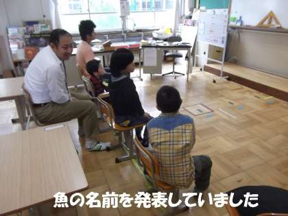 朝の会で先生と一緒に魚の名前を発表しあいました。