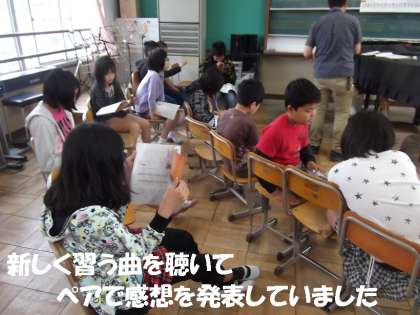 今日は,新しい曲に入りました。歌う前にメロディーを聴いて,おとなりどうしで感想を言い合っていました。