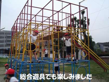「ぶらんこ」「てつぼう」「そうごうゆうぐ」「タイヤのり」そして「うんてい」であそびました。