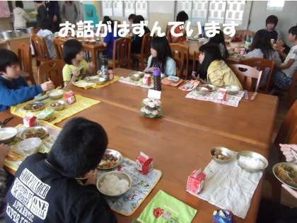 いただきますのあとは,各テーブルで話がはずんでいました。3組の子どもたちも緊張感がなく,和やかなムードの中で楽しい給食を食べました。