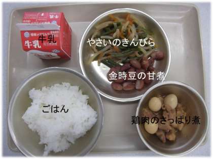 今日は,ほんのり甘味のある金時豆を給食で味わいました。