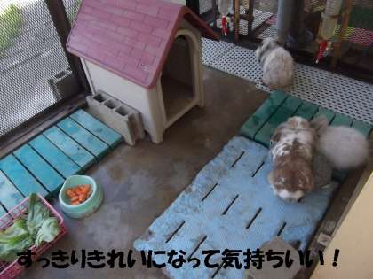 早朝からうさぎ小屋の中を大そうじしてやりました。