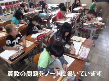 1組は,算数の問題をノートに写し取り,先生のアドバイスをヒントに難しい問題を解いていました。2組は,朝一番に算数のテストでしたが,いつもより集中度が高く,しーんとした中で挑戦していました。