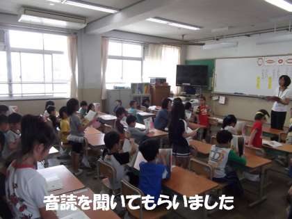 大きな声で教科書を読む1年生の成長が感じられました。
