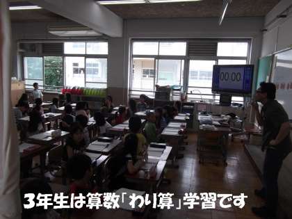 算数の「わり算」の学習です。この時期,しっかり理解しておかないと,後で困ります。二けたのわり算の問題をみんなで考えて解いていました。