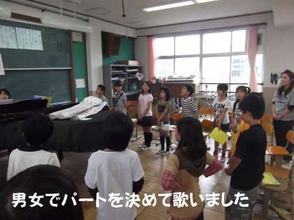 音楽室に行っての音楽の授業は,とても盛り上がり楽しいです。今日は男の子と女の子のパートにわかれて歌を元気に歌っていました。