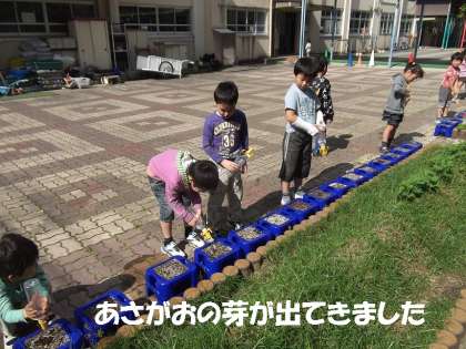 1年生が生活科でたねまきした「あさがお」が発芽してきました。