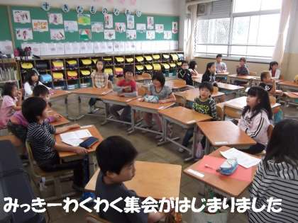 今日は,児童会のたてわり集会の顔合わせです。今年から「みっきーわくわく集会」という名前になりました。