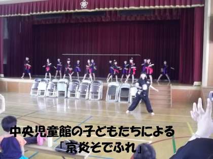 オープニングセレモニーとして,醍醐中央児童館の子どもたちと,京都薬科大学の学生さんの「京炎そでふれ」ダンスからはじまりました。