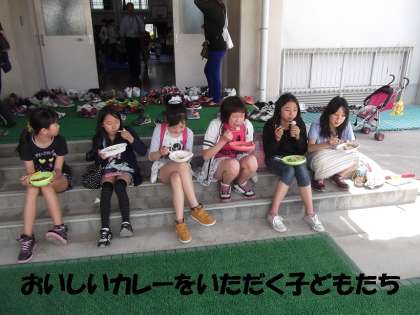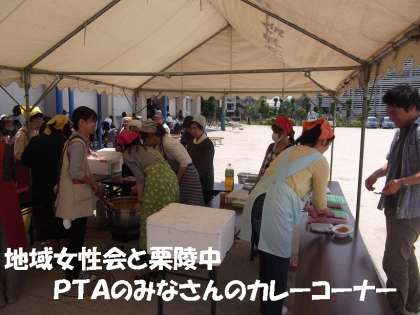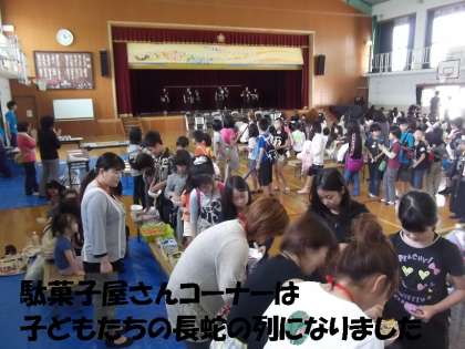 スタート後,すぐに子どもたちは,本校PTAのみなさんの「駄菓子屋さんコーナー」と地域女性会&栗陵中PTAのみなさんの「カレーコーナー」に長蛇の列を作りました。
